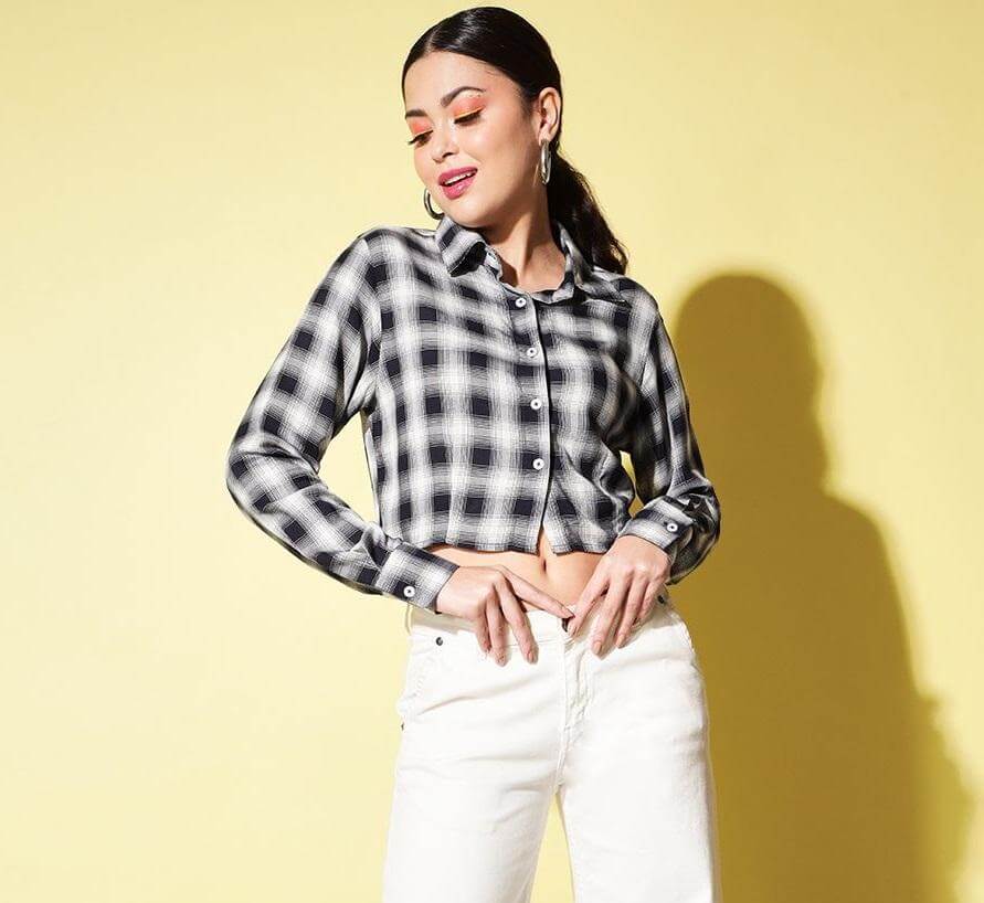 Product Description: Trend Arrest Women's Rayon Checkered Shirt Package Contains: It has 1 Piece of Shirt Fabric: Rayon Neckline: Collared Neck Sleeves: Full Sleeves Pattern: Checkered Print Color: Black 7 White Style: Regular Size: S, M, L, XL Brand: Trend Arrest Weight : 200 It's crafted from lightweight rayon material that drapes elegantly on your curves and is comfortable to wear during any season.